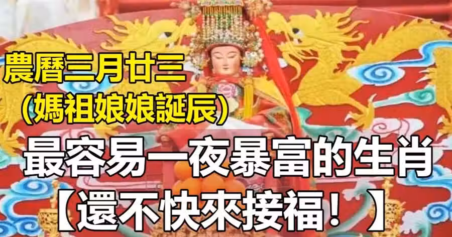 農曆三月廿三(媽祖娘娘誕辰)最容易一夜暴富的生肖【還不快來接福!】