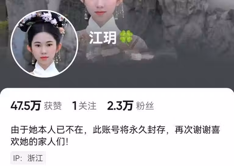 江玥的哥哥目前已經更改了江玥的個人簡介,簡介中寫道:「由於她本人已不在,此帳號將永久封存,再次謝謝喜歡她的家人們」。