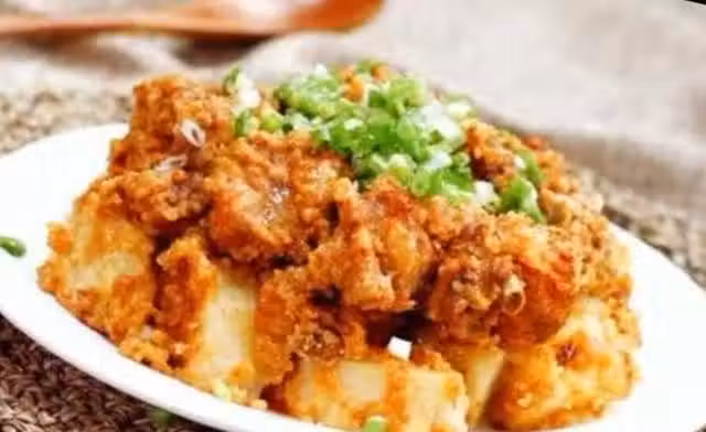 豬小排500g,蒸肉米粉50g,油適量,鹽2g,豆瓣醬10g,薑片適量,香蔥2根,生抽5g,老抽2g,糖2g,酒釀15g,十三香2g、辣椒麵適量,花椒油3g,白鬍椒粉2g,雞精3g,土豆一個。