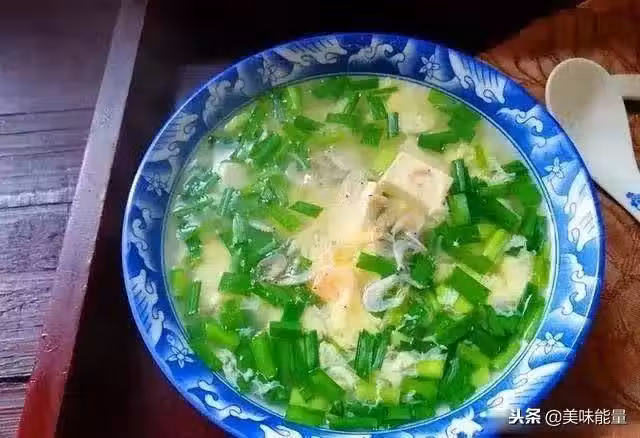 資料:韭菜1把、雞蛋2個、豆腐1/2塊、蝦皮1湯匙、香油1湯匙、鹽適量、姜1片、