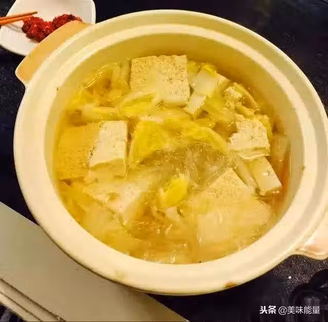 假如喜愛吃粉絲能夠放一小扎粉絲。豆腐下鍋後等水再開了就能夠放粉絲了。