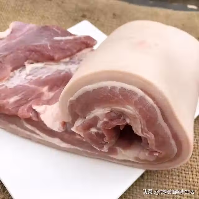 1、在鍋中倒入適量的清水,再放入洗好的五花肉,然後加入蔥段、薑片、料酒,去腥增香。大火把水煮開後繼續焯煮3分鐘左右,把肉皮煮到收緊、透明的狀態就可以關火撈出來了。