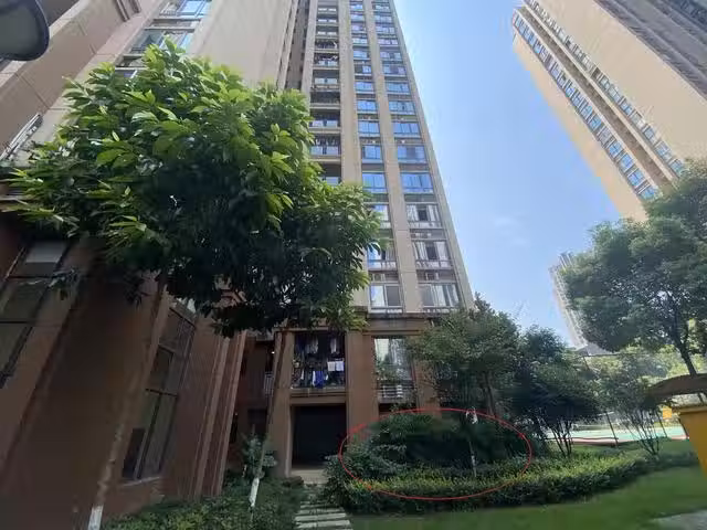 2020年11月2日,2名幼童從重慶南岸區錦江華府4棟15樓墜下(紅圈處),檢方指控孩子父親涉嫌故意殺人。 澎湃新聞記者 謝寅宗 資料圖