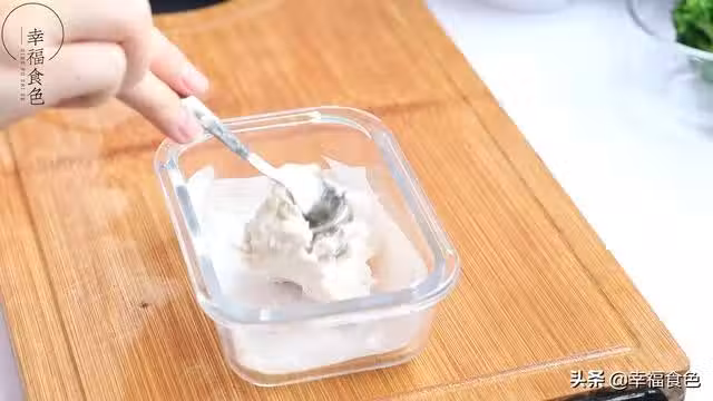 6、西藍花焯水後切碎,加入一個蛋黃攪拌均勻,一歲以上可以使用全蛋來製作。