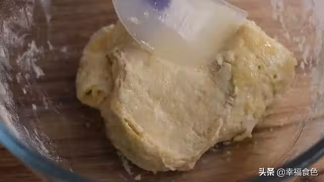 4、蓋上蓋子鬆弛一個小時左右,也可以頭天晚上做好放冰箱冷藏,第二天再炸。最後得到的是一個偏柔軟的麵糰。