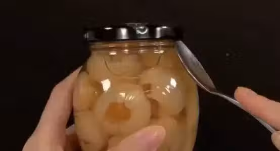 我們準備一個容器,倒入開水,之後將這個罐頭瓶倒立在這個開水中,讓開水沒過罐頭瓶蓋,然後浸泡二分鐘左右。