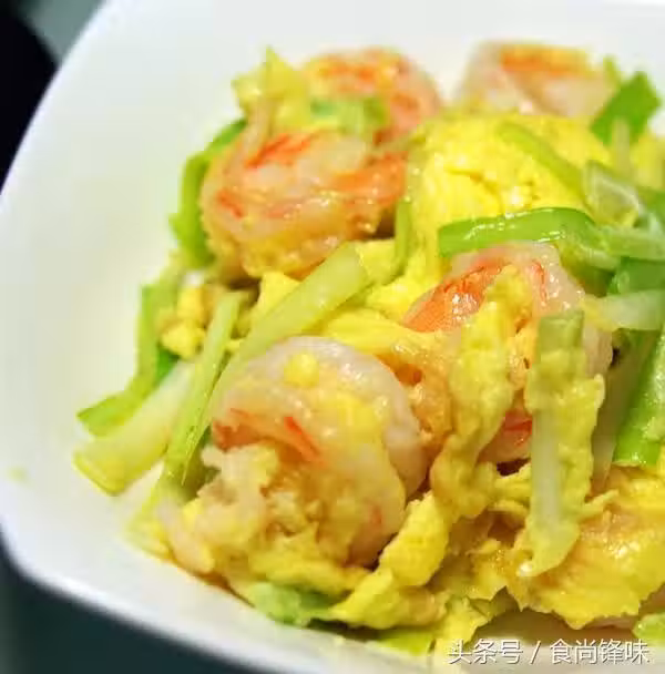 3、熱鍋涼油,中小火,下蝦仁滑至變色盛出。和韭黃段一起加入蛋液中。
