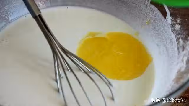 第三步、準備一個淺一些的盤子,倒入糯米粉糊,我用的是披薩盤,可以防粘。