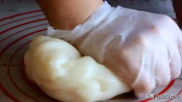 第八步、帶手套把糯米麵糰揉一下,揉過之後更加Q彈光滑。