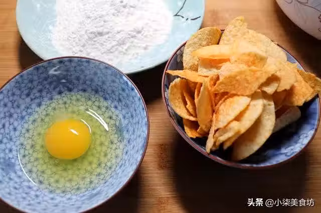 第五步:再把大波浪薯片裝入密封袋或保鮮袋裡,用擀麵杖碾碎裝碗里,備用。