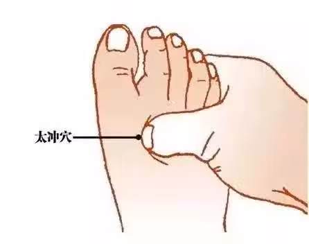 3、按壓肝臟排毒要穴。太沖穴,位置在足背第一、二跖骨結合部之前的凹陷中。用拇指按揉3~5分鐘,感覺輕微酸脹即可。不要用太大的力氣,兩隻手交替按壓。