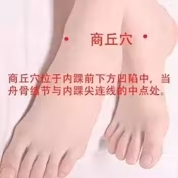 2、按壓脾臟排毒要穴。商丘穴,位置在內踝前下方的凹陷中,用手指按揉該穴位,保持酸重感即可,每次3分鐘左右,兩手交替做。