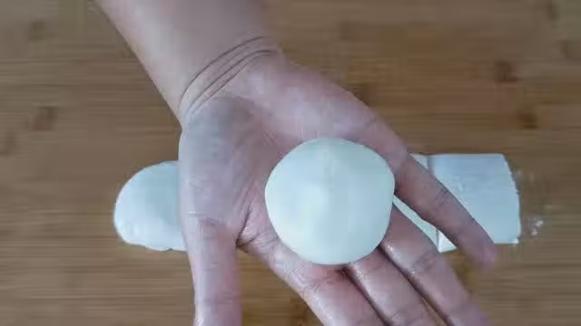 11、手上抹油,取一個糯米團放到手心,按壓成碗狀