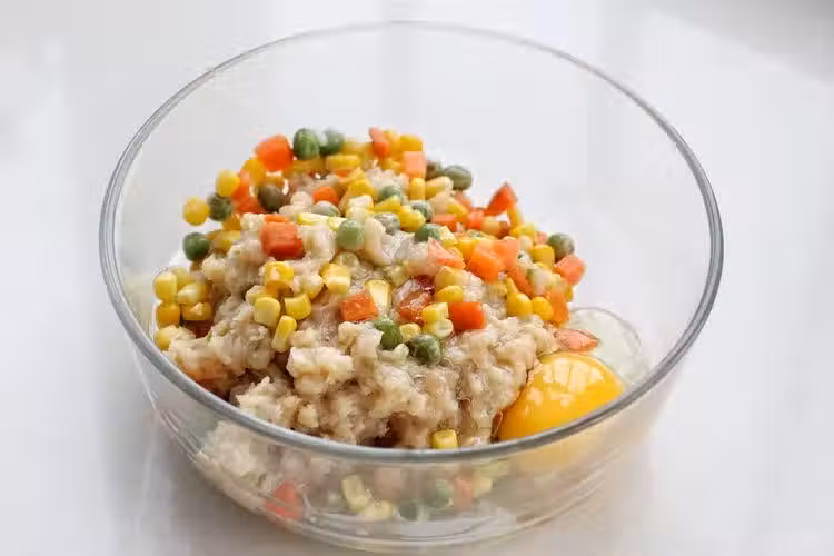 4.接著調入生抽、鹽、糖、胡椒粉、生粉和一湯匙玉米油。