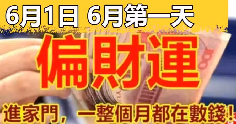 6月第一天【偏財運】進家門!一整個月都在數錢的生肖!
