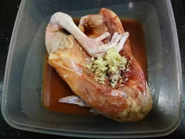 2.再加薑末繼續按摩,蓋上保鮮盒蓋,放冰箱腌制三小時以上,我腌制了一個晚上,入味更充分。