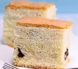 用兩個干淨無水的盆分別盛蛋白和蛋黃。蛋白加白醋用攪拌器高速打幾分鐘到發,接著加入糖1/4杯再打2分鐘。接著用攪拌器高速打蛋黃1分鐘,加糖打到糖溶解。加入所有剩下的3料打勻,然後加入1料,中速打1-2分鐘均勻即可。然後拌入蘋果粒和葡萄乾,將先前打發的蛋白1/3放入蛋黃糊裡,用橡皮拌勻。然後將蛋黃糊到入打發的蛋白裡用橡皮刀從上往下輕輕拌勻。