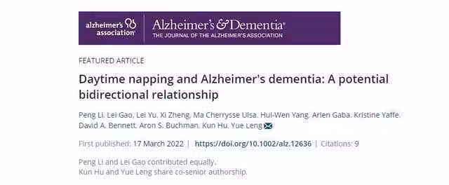 美國加利福尼亞大學的研究人員發表在《阿爾茨海默氏症與痴呆症:阿爾茨海默氏症協會雜誌》上的一項研究指出:午睡和大腦之間存在雙向關係。白天午睡時間過長,會增加老年時期的老年痴呆風險,年齡越大罹患老年痴呆的風險會隨著午睡時間延長而增加。
