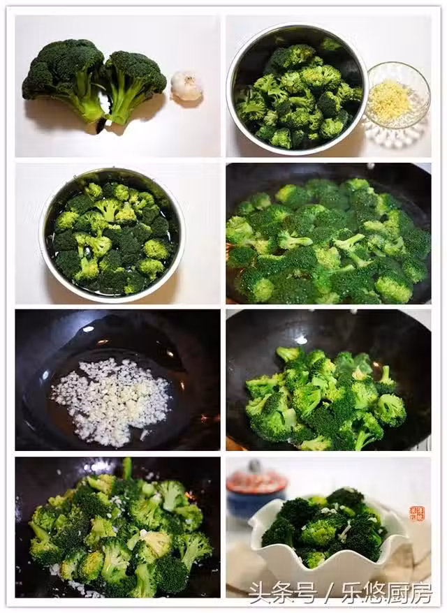 第六步:將焯過水的西蘭花放入鍋中煸炒勻均。