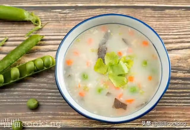 【食材準備】豬肉、新鮮豌豆、香菇、胡蘿蔔、大米、食用油、鹽、生抽。
