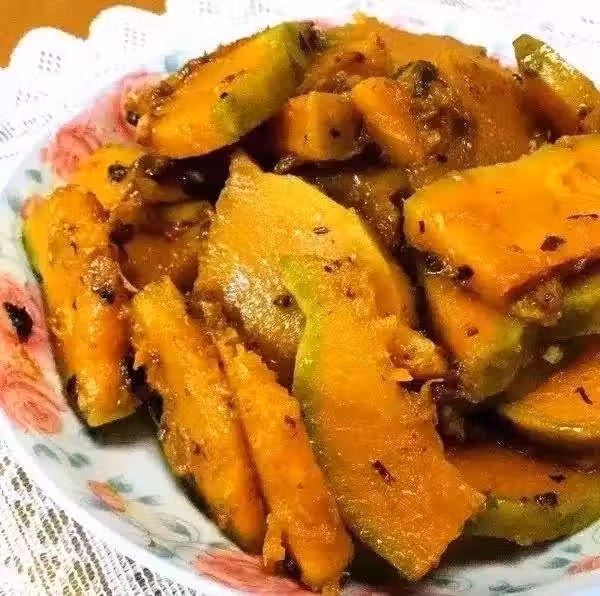 南瓜500克,植物油、鹽、豆豉適量