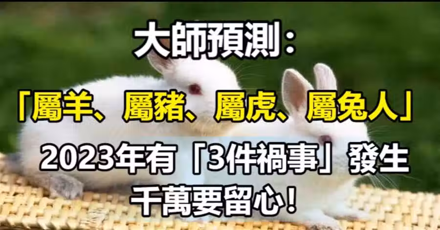 大師預測:「屬羊、屬豬、屬虎、屬兔的人」2023年有「3件禍事」發生,千萬要留心!