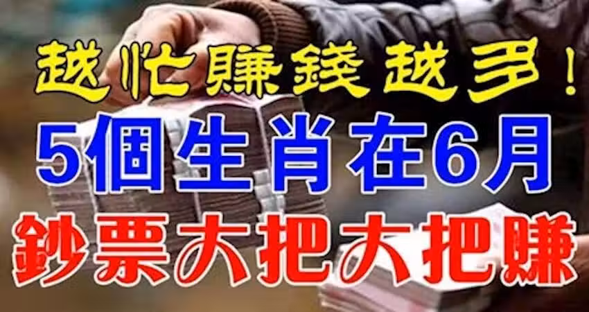 越忙賺錢越多,五個生肖在6月賺大錢快來接