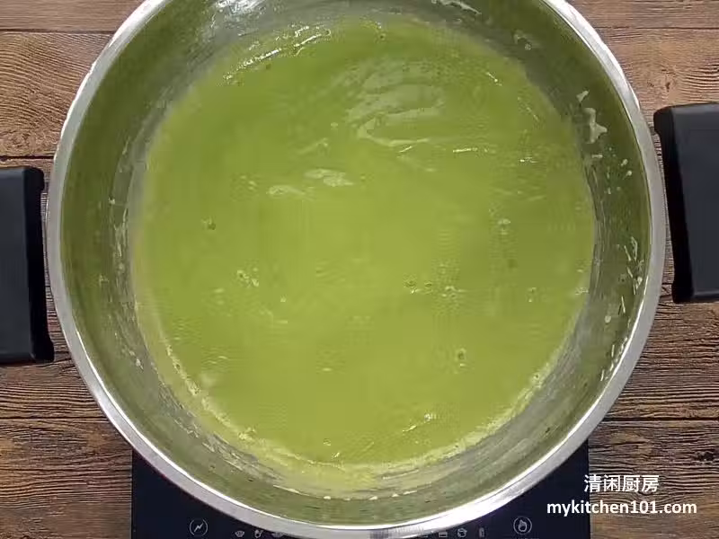 11 繼續用攪拌器攪拌至加椰醬順滑。