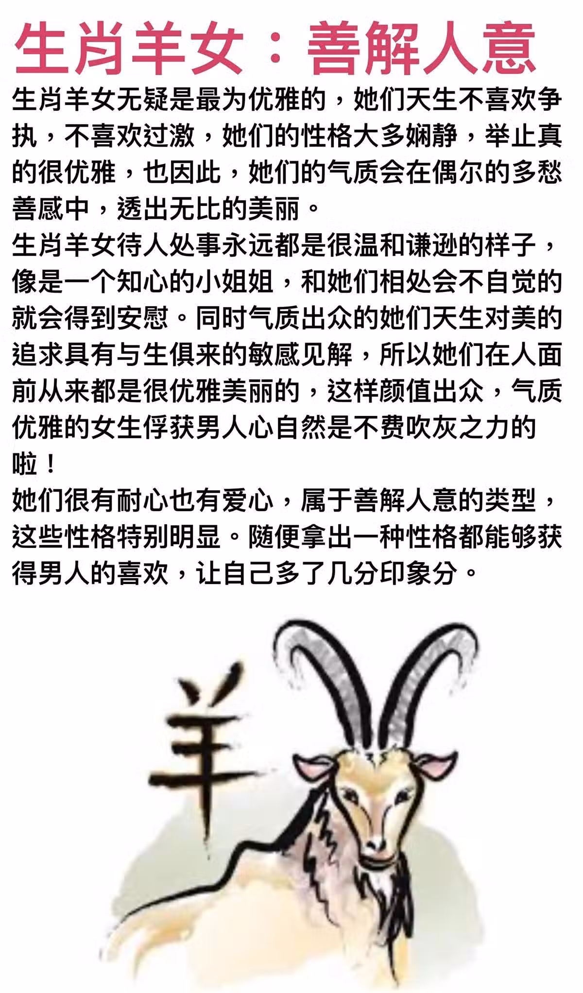 生肖羊女:善解人意