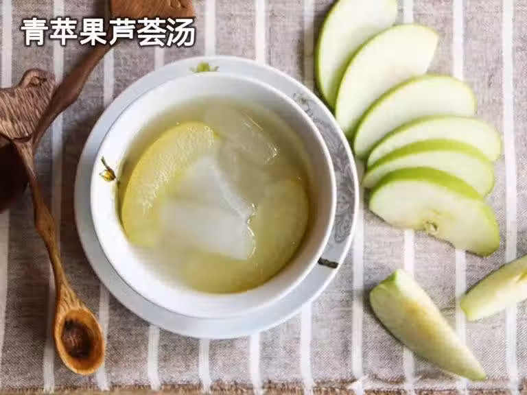 鍋中注入適量清水,放入蘋果,蘆薈,開火煮15分鐘,調入冰糖即可。