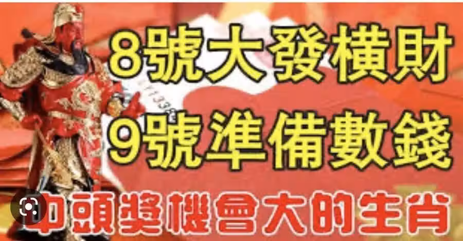 六大生肖,中頭獎機會大!8號大發橫財,9號準備數錢!