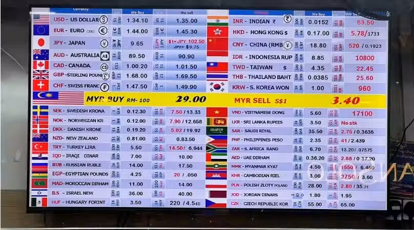 新元對令吉的兌換率創新高,新加坡兌換商開出的令吉匯率介於3.39至3.41之間。(取自8視界新聞網)