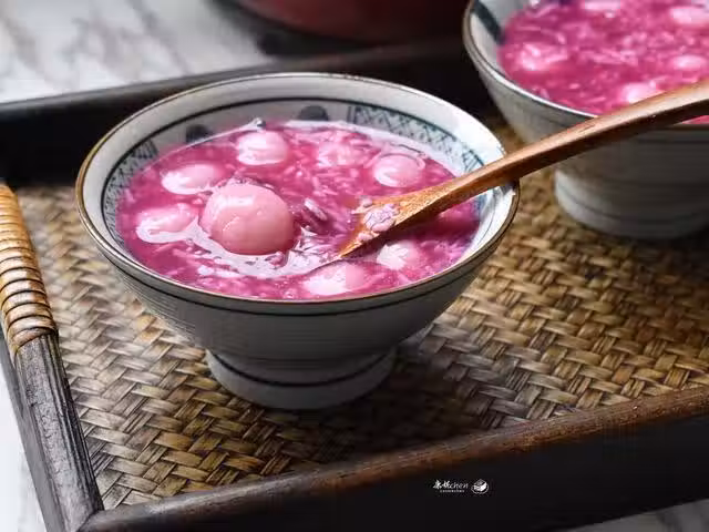 【紫薯丸子酒釀的食材】酒釀 300克,紫薯 1個,糯米粉 150克,開水 100克。