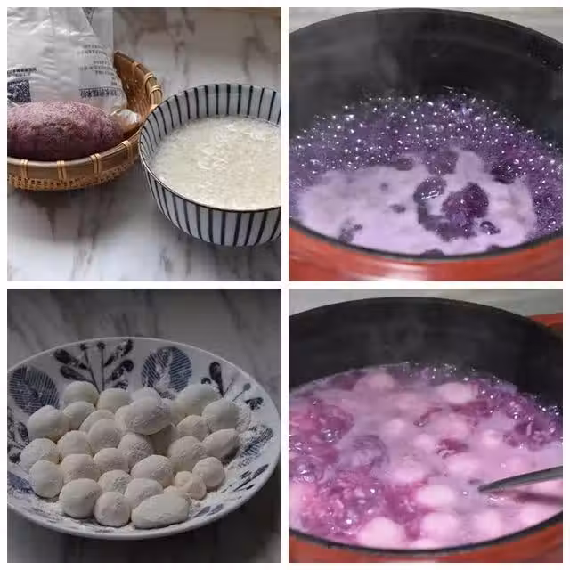 【紫薯丸子酒釀的製作過程】