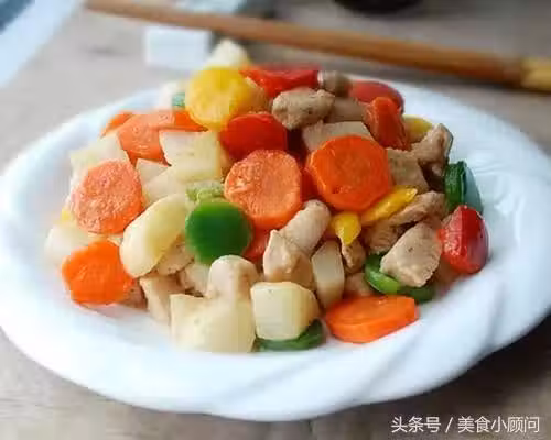 1.準備食材:山藥、胡蘿蔔、豌豆、玉米粒、紅甜椒、蔥蒜末