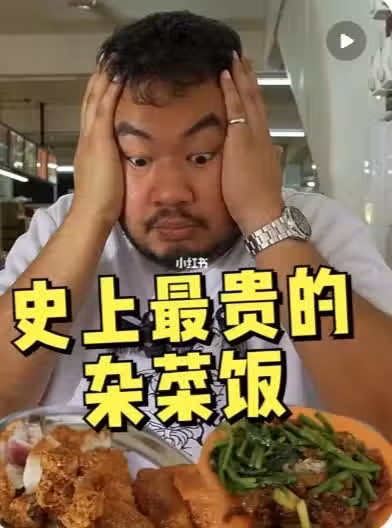 大Hee近日到吉隆坡一家著名雜飯店消費,2菜2肉要33令吉,讓他大喊:「好貴!」(截圖自小紅書視頻/大Hee)