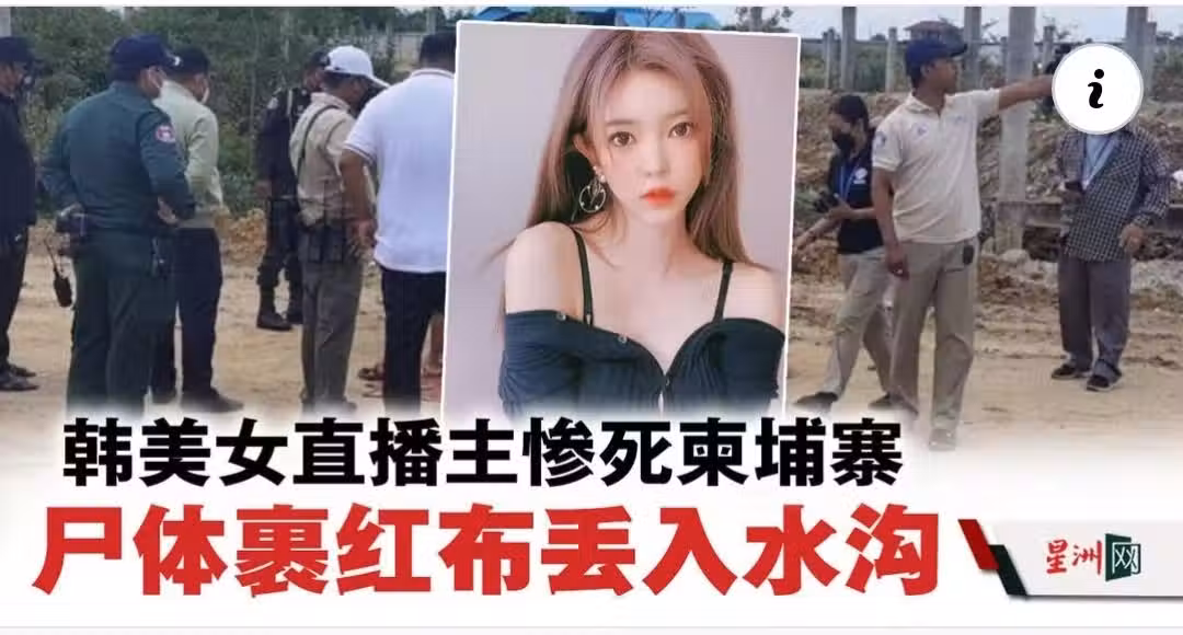 韓美女直播主慘死柬埔寨 屍體裹紅布丟入水溝