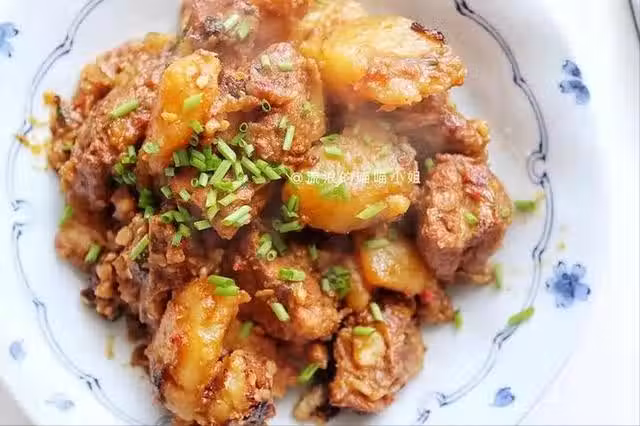 2、加上蔥姜蒜末、豆豉、適量的鹽、白糖、白鬍椒粉、生抽、蚝油、料酒,最後再來1、2勺澱粉,充分抓拌後,腌制1個小時。荔浦芋頭去皮切段,放在盆里,等排骨腌制好後,直接倒在芋頭上,上蒸鍋蒸40分鐘左右,就可以開吃啦。