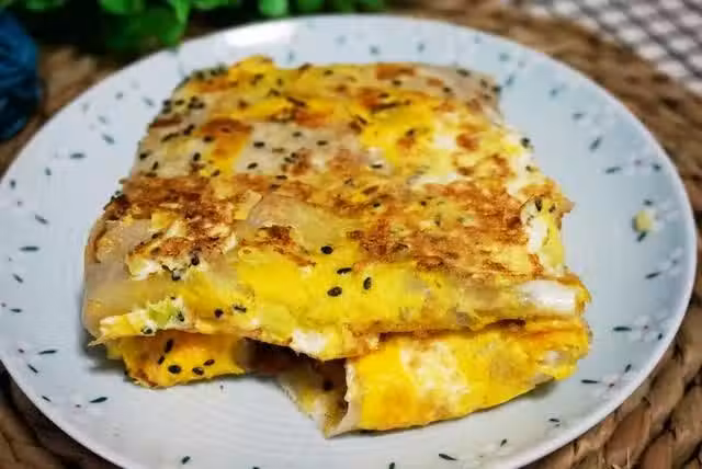 撒些蔥花,黑芝麻等,看個人喜好,也翻面後撒。