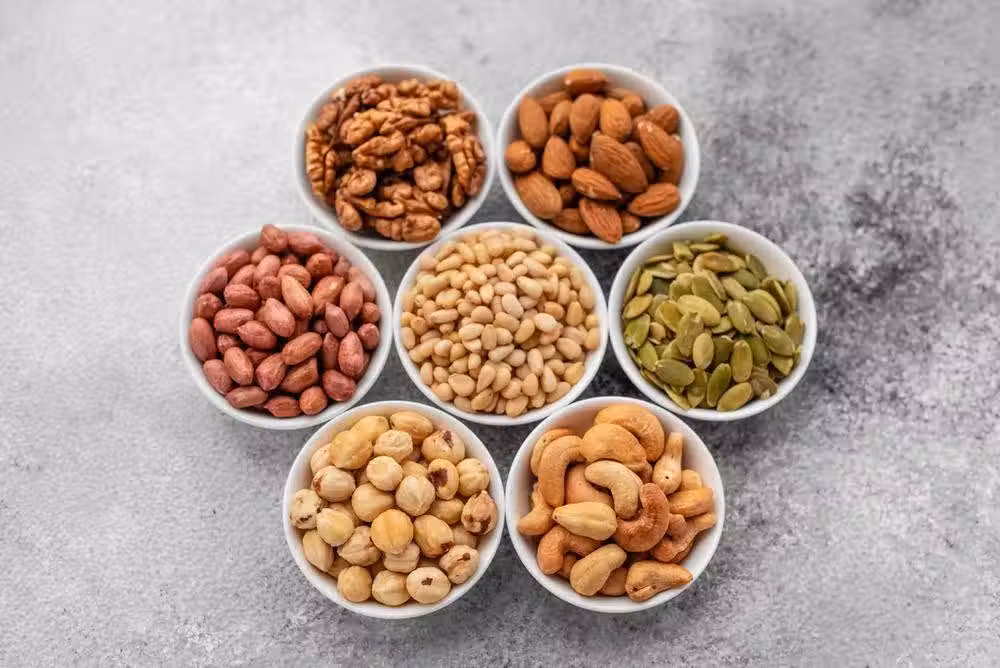 堅果中含有豐富的抗氧化劑、纖維和不飽和脂肪酸,可以降低患心臟病的風險。不過,堅果的熱量比較高,要適量食用。