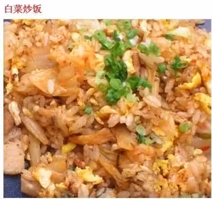 泡菜切碎,雞蛋打碎,先炒雞蛋,盛出備用,熱鍋燒油炒白菜,炒出香味後放入米飯,再放入炒好的雞蛋翻炒,最後放入鹽翻炒即可出鍋。