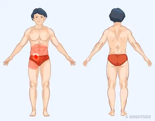 胃出問題的話,中腹部會疼痛,後背同一位置也會疼痛。