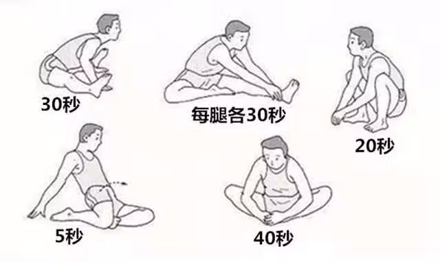 4、跟著圖示做,兩條腿各25秒;(由圖示從左到右,從上到下,共4個動作)
