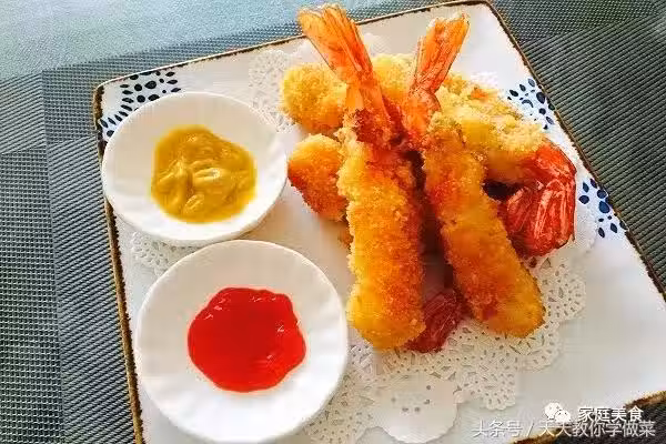 用料:蝦300克、雞蛋1個、麵包糠50克、小麥麵粉30克、食鹽1小匙、料酒1小匙、植物油30克、白鬍椒粉5克;