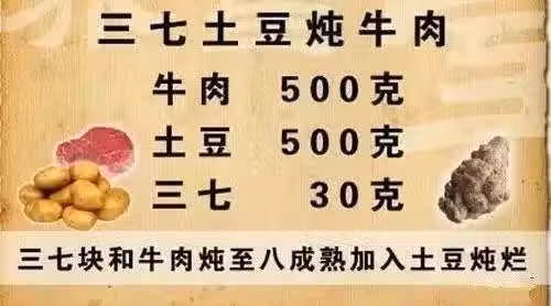 土豆500克、牛肉500克、三七30克
