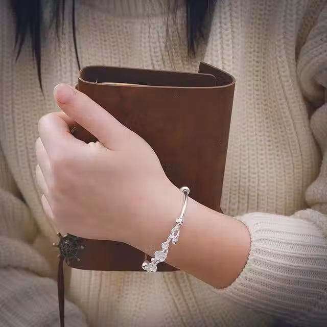 梅花點綴的手鐲顯得更加別致迷人,推拉設計的開口更加方便取戴,典雅時尚的梅花手鐲很好的襯托出你的氣質,視覺效果更好,展現出纖纖玉手。