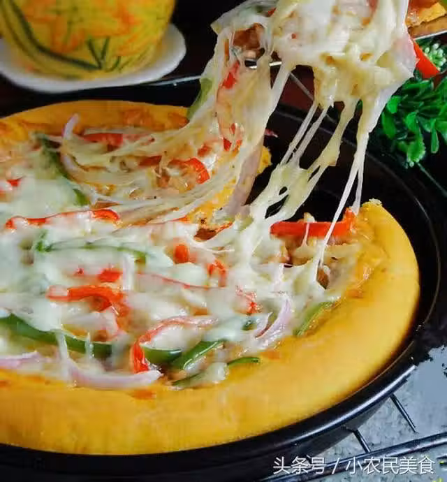 食材:老南瓜80克,高筋麵粉200克,酵母3克,雞腿2個,青紅椒各1個,洋蔥1/3個,披薩醬3大勺,馬蘇里拉乳酪200克,清水20毫升,酷克壹佰烤肉料30克