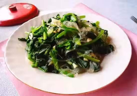 1、菠菜切去根部,清洗乾淨,切段;粉絲用涼水泡軟;燒一大鍋水,水開後放進菠菜,加入油、鹽,水再次煮開即可撈起放進準備好的涼開水裡
