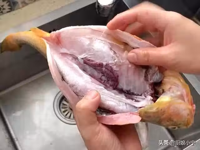 2、洗凈的魚給它將魚鰭和魚尾全部剪掉,這樣做的目的是為了在煎魚的時候,上下前後火候保持一致,不會有受熱不勻糊掉的狀況發生。然後在魚身上斜著打上花刀,方便入味,一側大概4-5刀即可。