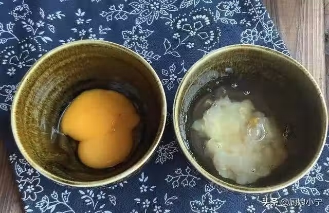 把雞蛋清直接打入魚肉里,蛋黃單放。